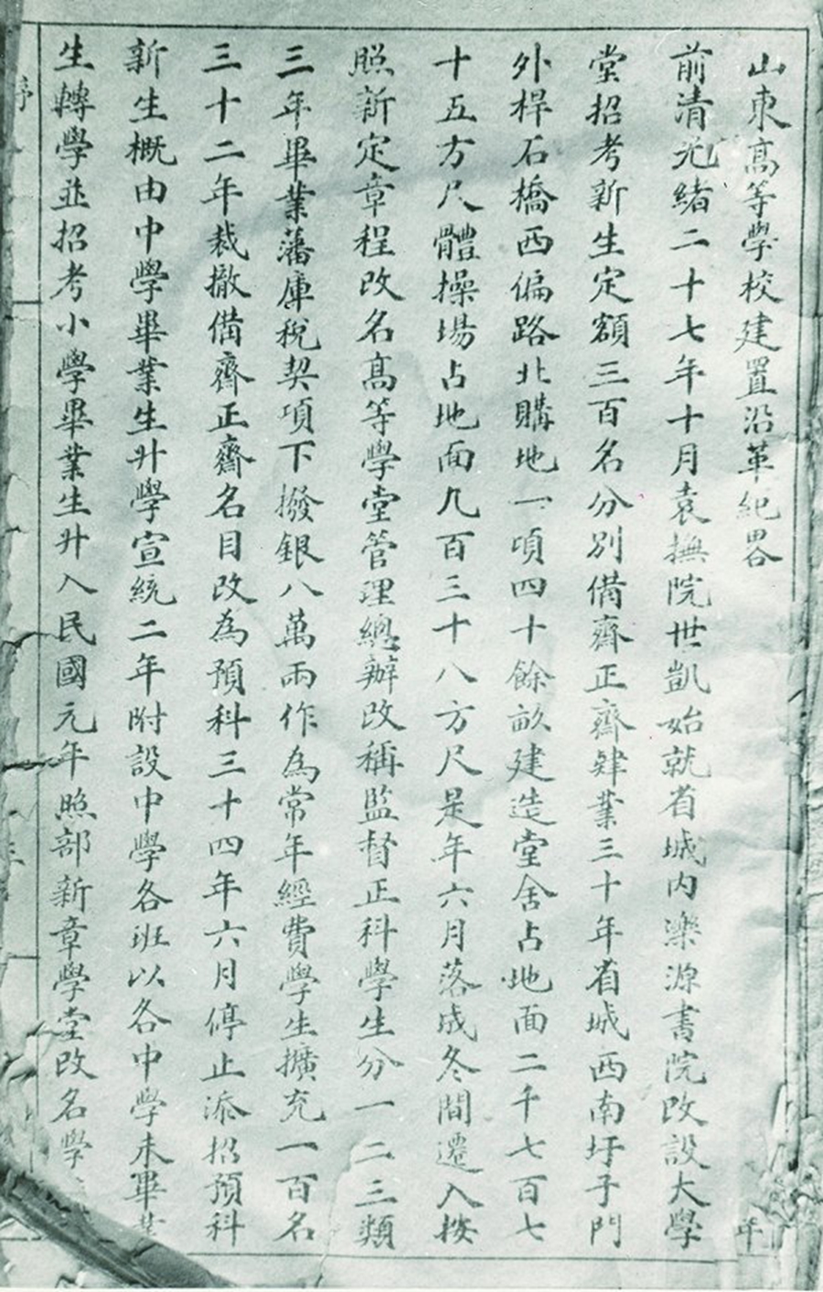 从校史溯源的角度考察,从1930年国立青岛大学成立到1981年,在长达50年的时间内,学校一直把省立山东大学作为学校的起点。如国立青岛大学1931年出版的《国立青岛大学一览》开篇《校史概要》就是从1926年省立山东大学成立说起。直到1981年发现山东大学堂的史料,山东大学才确立1901年的办学起点。2001年在山东大学百年校庆之前,从台北故宫博物院复制回来了袁世凯《遵旨改设学堂酌拟试办章程折》。虽然这已经是山东大学历史起点的最权威官方文献,但校史研究者们还是希望能找到更丰富、更直观的历史文献,譬如,有没有开校初期的真实照片记录?
