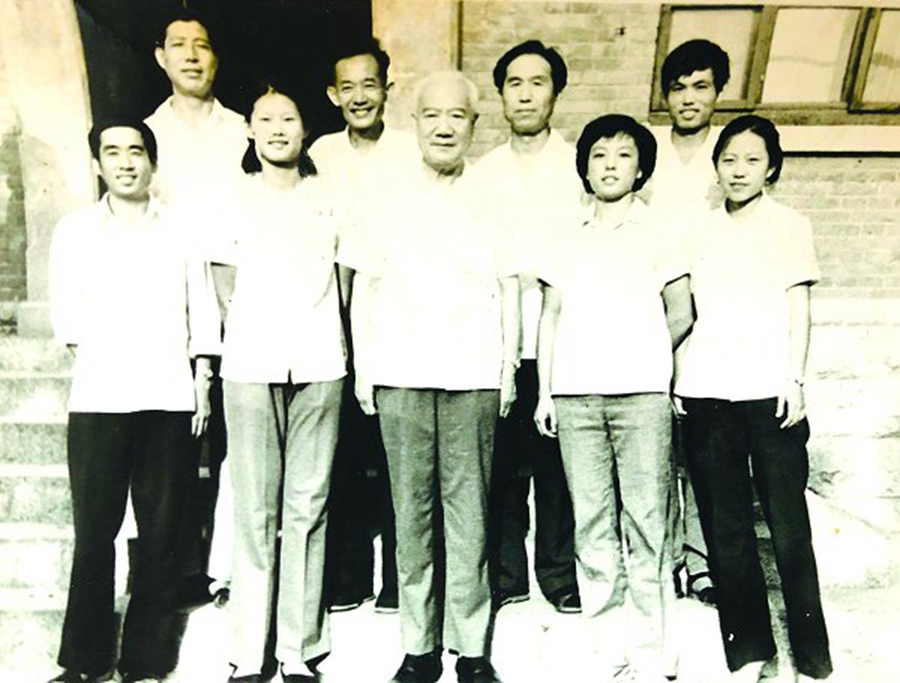 这张已经泛黄的黑白老照片,是42年前在山东大学老校(现为洪家楼校区)一号楼西门拍摄的。照片中站在C位的白发老者,是时任山东大学校长吴富恒,后排左起三位中年男子,分别是体育教研室的徐中明老师、董元连老师和物理系的徐儒英书记(领队)。其余5位年轻的在校大学生,都是校田径队的主力队员,分别是78级物理系的龙世立(后排右一)、78级哲学系的杨远新(前排左一)、80级数学系的臧耕(前排左二)、79级经济系的周英杰(前排右二)、79级历史系的朱瑞英(前排右一)。