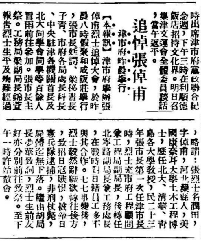 10.《追悼张倬甫:津市府昨晨举行》,《大公报》(天津)1946年7月1日。