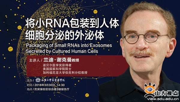 [本站讯]3月30日14:30,诺贝尔生理学或医学奖获得者兰迪·谢克曼教授将做客山东大学齐鲁医学院,为山大师生带来一场题为“Packaging of Small RNAs into Exosomes Secreted by Cultured Human Cells”(将小RNA包装到人体细胞分泌的外泌体)的学术报告。