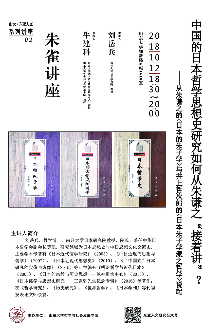 刘岳兵,哲学博士,南开大学日本研究院教授、院长,兼任中华日本哲学会副会长等职。研究领域为日本思想史与中日思想文化交流史。主要学术专著有《日本近代儒学研究》(2003)、《中日近现代思想与儒学》(2007)、《日本近现代思想史》(2010)、《“中国式”日本研究的实像与虚像》(2015)等;主编有《明治儒学与近代日本》(2005)、《日本的宗教与历史思想——以神道为中心》(2015)、《日本儒学与思想史研究——王家骅先生纪念专辑》(2016)等著作;在《哲学研究》《历史研究》《世界哲学》《日本学刊》等刊物发表论文90余篇。