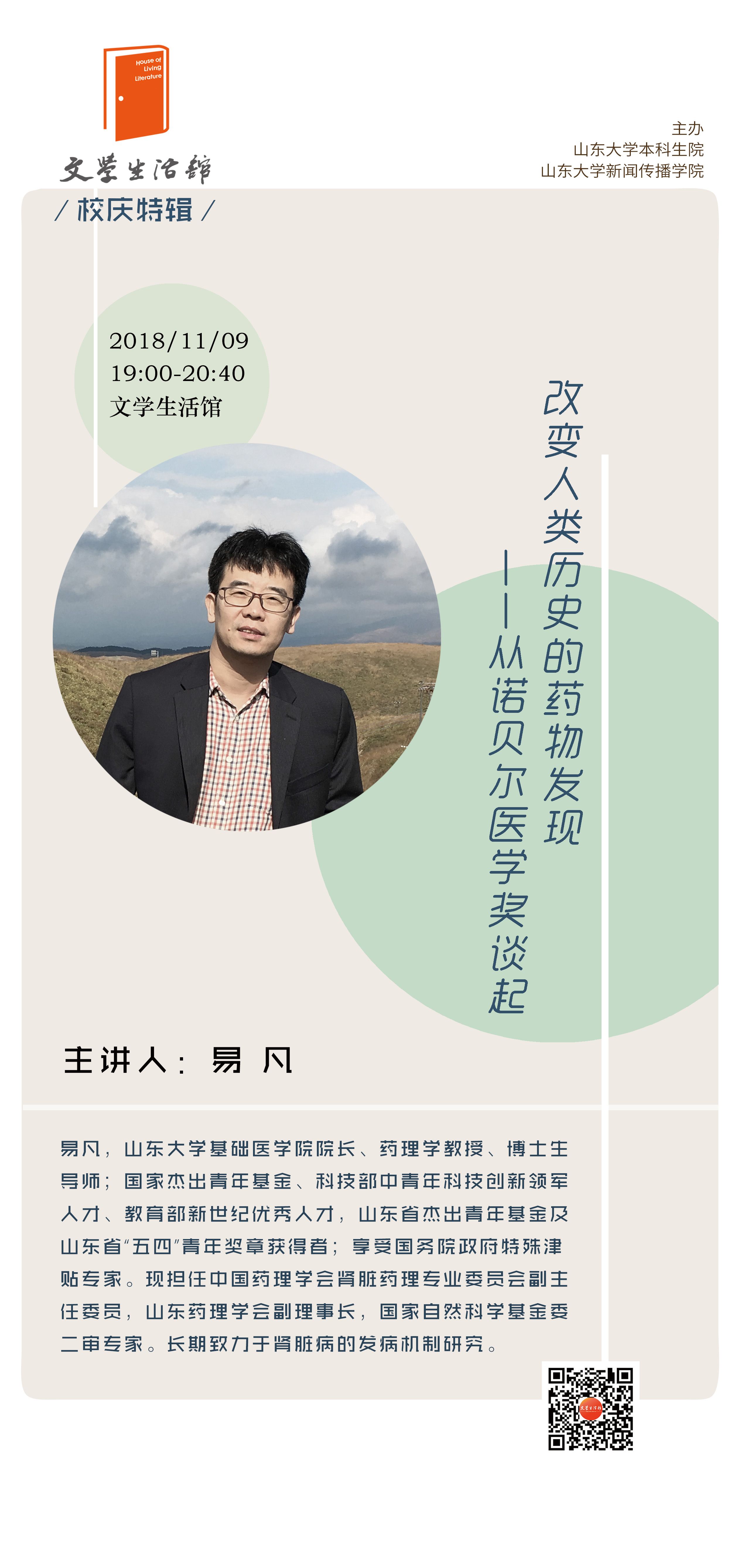 易凡,山东大学基础医学院院长、药理学教授、博士生导师;国家杰出青年基金、科技部中青年科技创新领军人才、教育部新世纪优秀人才,山东省杰出青年基金及山东省“五四”青年奖章获得者;享受国务院政府特殊津贴专家。现担任中国药理学会肾脏药理专业委员会副主任委员,山东药理学会副理事长,国家自然科学基金委二审专家。长期致力于肾脏病的发病机制研究。