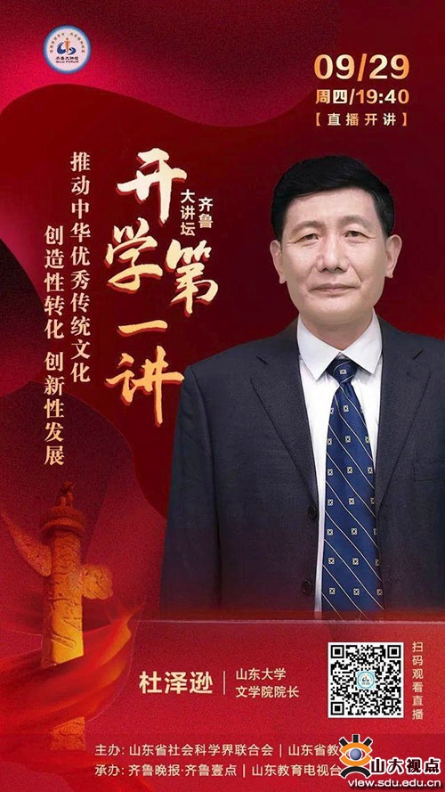 【齐鲁大讲坛·开学第一讲预告】29日,听山东大学杜泽逊教授讲中华优秀传统文化的创造性转化、创新性发展