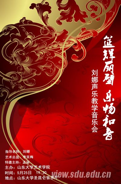 一、演出时间:2015年5月25日(周一)晚19:30 二、演出地点:山东大学圣昆仑音乐厅 三、指导老师:刘娜