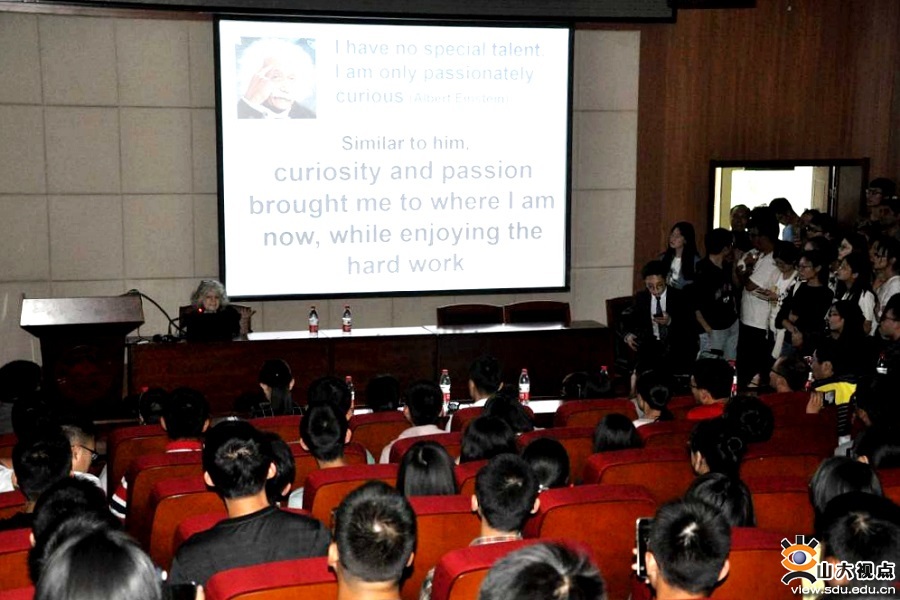 会见后,Ada Yonath教授为师生作题为“我如何成为一名科学家(How I became a scientist)”的报告。她从自己的成长经历谈起,利用图片和动画深入浅出地介绍了她研究核糖体的动因、路径和成果,展示了蛋白质合成工厂——核糖体的结构功能与作用机理。她提到,尽管自己在科研过程中遇到了各种困难,但她一直保持强烈的好奇心和对科学研究的激情,才取得了现在的成绩。Ada Yonath教授鼓励年轻师生保持好奇,坚持兴趣,做自己想做的事情。化学与化工学院、国际事务部负责人参加相关活动。
