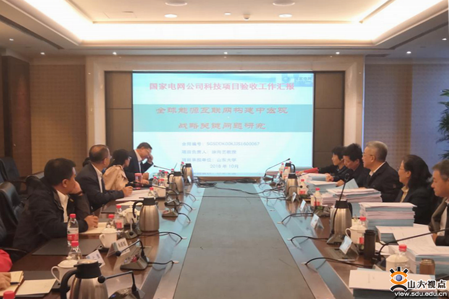 [本站讯]10月11日,山东大学管理学院徐向艺教授主持的国家电网有限公司重大科技项目《全球能源互联网构建中宏观战略问题研究》在北京通过了国网公司专家组鉴定验收。国网经济技术研院总工程师宋璇坤、国网北京市电力公司科技信通部副主任黄仁乐、国网山东经研院规划评审中心主任牛新生、东南大学需求侧管理研究所所长李扬、全球能源互联网集团有限公司高级工程师王哲等专家作为评审成员参会。