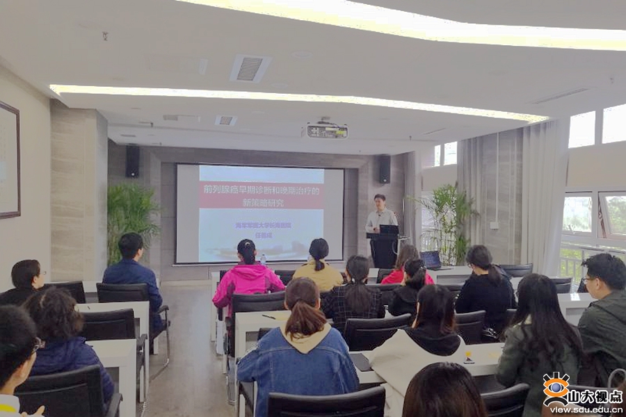 任善成副教授从我国前列腺癌诊疗面临的问题出发,以临床医生的角度向大家介绍了如何进行前列腺癌的转化研究,强调好的临床转化医学研究者应从解决实际临床问题出发,应用前沿实验技术,获取丰富的实验数据,得出可靠的结论并进行实验成果转化。在报告中,任善成副教授讲解了个人在前列腺癌早期诊断标志物及晚期前列腺癌进展和耐药分子机制研究方面的最新成果。报告结束后,在座师生与任善成副教授进行了热烈讨论。基础医学院各学系70 余名师生参加了本次论坛。