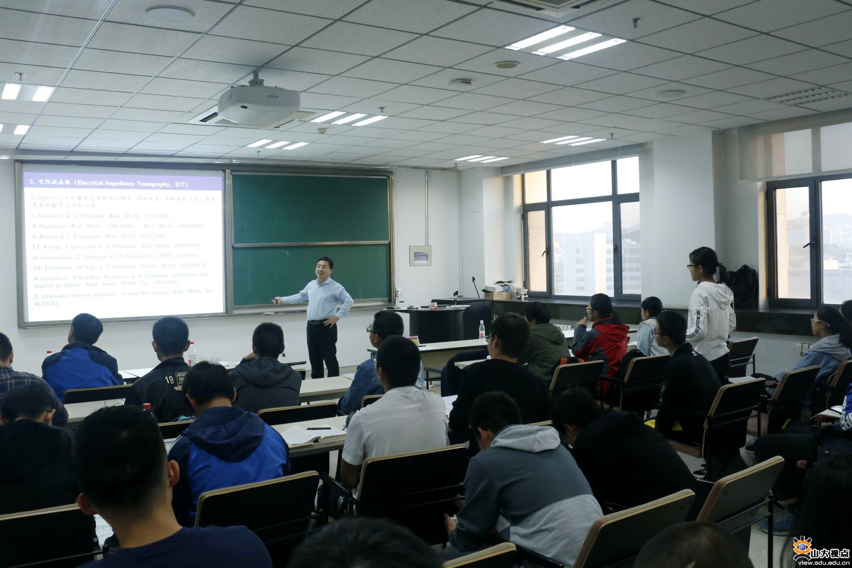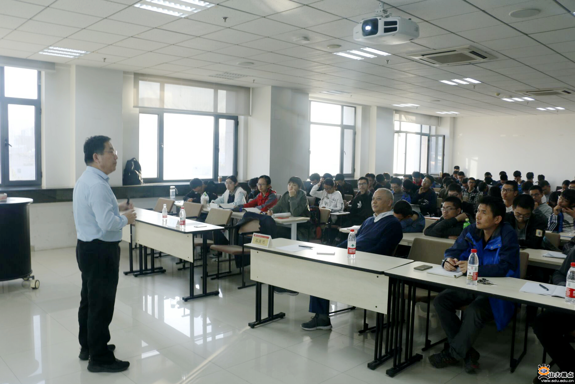 [本站讯]10月26日下午,中国科学院数学与系统数学研究所应用数学所张波研究员应邀来访山东大学并作题为“反问题及其应用”的学术报告。报告由数学学院副院长芮洪兴主持,数学学院部分老师以及华罗庚班同学参加此次报告会。