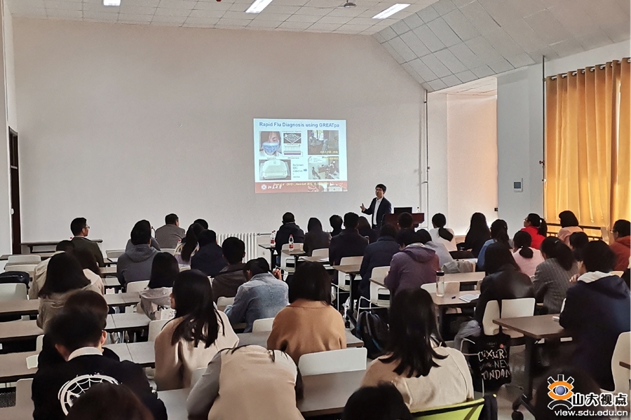 报告会上,要茂盛教授总结了归国十年间的学术心得,重点介绍了其团队开发的空气生物安全防御系统BioSTAND,包括针对人群呼吸系统感染和健康效应的生物气溶胶实时监测系统GREATpa、针对PM2.5健康效应及基因响应机制网络创建的大气颗粒物毒性实时监测系统SLEPTor和针对PM2.5毒理在动物水平上的实施标志物监测表征颗粒物毒性活体标志物实时监测系统dLABer,并对系统的科学创新性、社会效益与商业价值进行了精彩阐述。他强调,要选择有创新性(Innovative)、应用价值广(Useful)、可操作性高(Simple)的课题为研究方向,同时加强不同学科的互补合作,利用学科交叉实现研究工作影响指数级的增长,最后要创建学科体系,回答和解决领域内的关键科学与技术问题,坚持不懈保持阶梯式的进展。要茂盛教授勉励山东大学的青年学者选对方向,做对社会有价值的科学研究,希望青年学者的工作能够推动人类健康以及社会经济的发展,能够为社会培养所需人才,增加人类对未知事物新的理解。来自环境学院、环境研究院的部分师生聆听了报告。