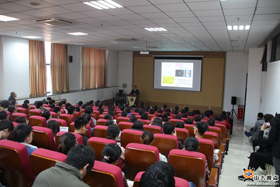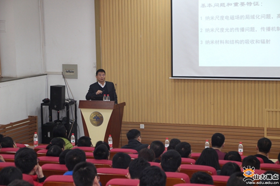 座谈会后,徐红星教授做客稷下风讲坛,为师生作了“等离激元光子学和纳米光学基本问题研究”的学术报告。徐红星教授从光学的发展历史引入,介绍了光学领域的研究热点“等离激元光子学和纳米光学”,着重讲解了纳米间隙等离激元耦合结构的发现、纳米光学超灵敏传感原理,以及在单分子表面增强拉曼光谱上的应用。此外,徐红星教授还介绍了自己最近从事的前沿课题研究,主要包括微纳光电技术和辐射制冷技术在光辐射与吸收方面的应用。报告结束后,徐红星教授与师生进行了互动交流,就学生提出的问题进行了解答。