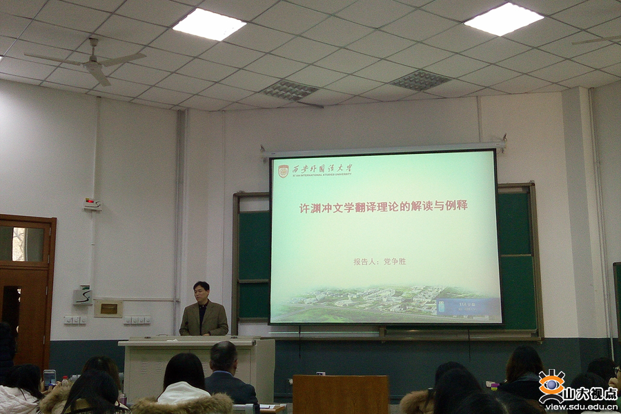 [本站讯]12月13日上午,西安外国语大学副校长党争胜教授做客外国语学院,并作题为“许渊冲文学翻译理论的解读与例释”的学术讲座。本次讲座由外国语学院副院长马文教授主持,学院部分师生参加了此次讲座。