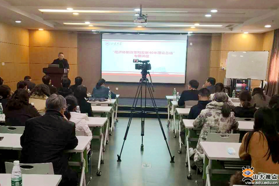 随后,黄少安教授从理论层面对我国经济体制改革和发展进行了深刻解读。黄少安教授通过提炼改革开放40年来我国对马克思主义经济学、东欧经济学、凯恩斯主义经济学三大理论依据借鉴的变迁和公有制与市场经济可以统一、渐进式改革行之有效、土地三权分置迸发活力三大理论创新,为中国经济体制改革和经济发展的理论创新做了创建性系统归纳。黄少安教授强调,生产关系与生产力正如鞋子和脚,改好经济体制的“鞋子”,才能避免“鞋不合脚”的问题。时代发展站在新的起点上,改革开放任重道远但势在必行。只有继续深化改革开放,才能真正使我国经济社会更好发展,人民群众共享改革成果。