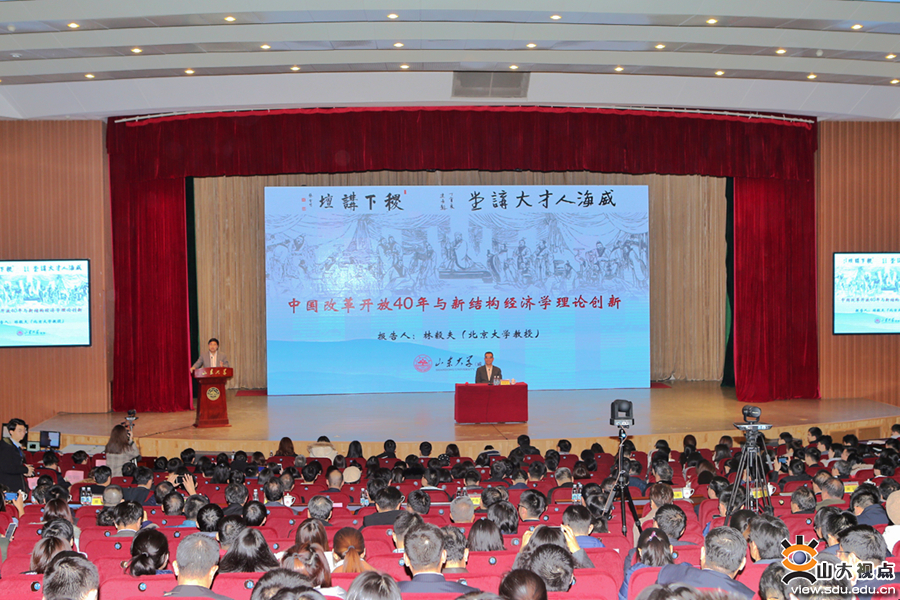 [本站讯]12月20日下午,北京大学新结构经济学研究院院长、南南合作与发展学院院长、全国政协常委、经济委员会副主任、国务院参事室参事林毅夫教授应邀做客威海校区稷下讲坛,在知行会堂作了题为“中国改革开放40年与新结构经济学理论创新”的专题报告,与威海校区师生畅谈中国经济发展。威海市委副书记、市长张海波,威海市人大常委会主任王学文,威海校区党工委书记尹作升,威海市委常委、组织部长刘运出席报告会。威海校区副校长黄凯南主持会议。