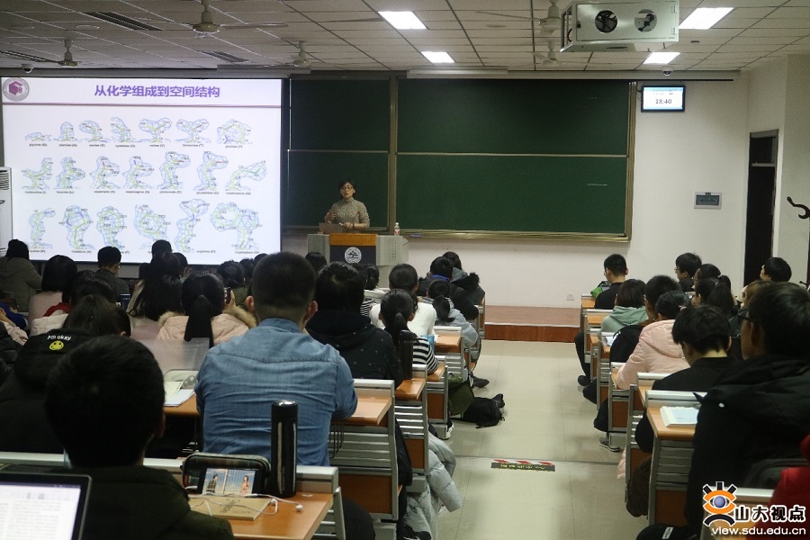 访问期间,颜宁教授为2018级生命学院的本科生上了一堂生动的膜蛋白结构学科普课,她从结构学的基础氨基酸开始讲解,进一步讲到了结构生物学的发展,X射线衍射和冷冻电镜的原理,并与在座同学就学科、就业、人生等问题展开互动和交流。