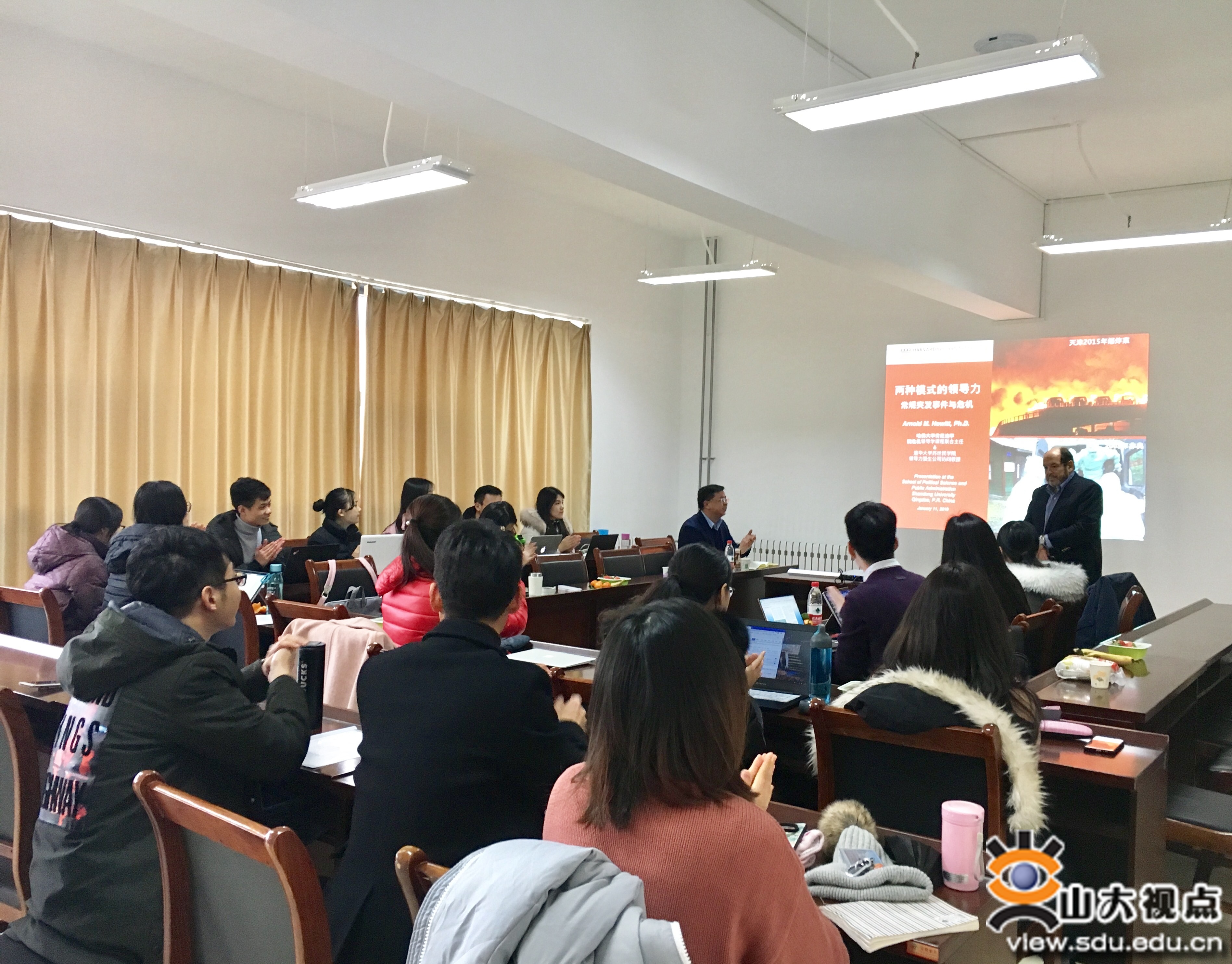 [本站讯]1月11日,哈佛大学肯尼迪政府学院Howitt教授应山东大学政治学与公共管理学院的邀请,作了题为“两种领导力模式:常规突发事件与危机”的学术讲座,政管学院副院长马奔教授主持讲座,政管学院和其他相关专业的师生参加了此次讲座。