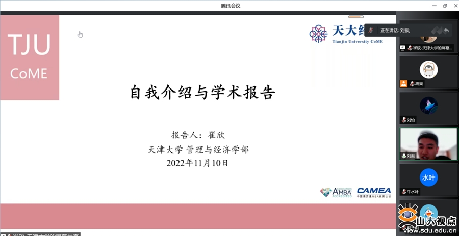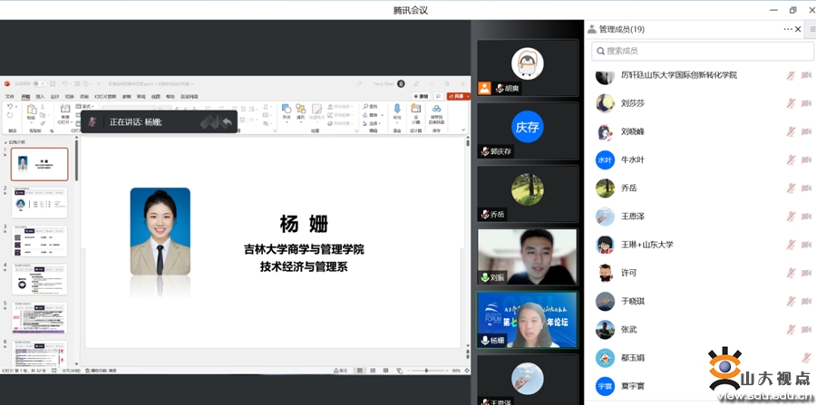 [本站讯]11月10日下午,由国际创新转化学院承办的第七届齐鲁青年论坛之创新转化与知识产权管理分论坛以线上形式举办。学院副院长乔岳、兼职特聘教授郭庆存和学院青年教师参加,活动由院长助理刘振主持。来自天津大学的崔欣博士、武汉大学的王恩泽博士和吉林大学的杨姗博士作学术报告。