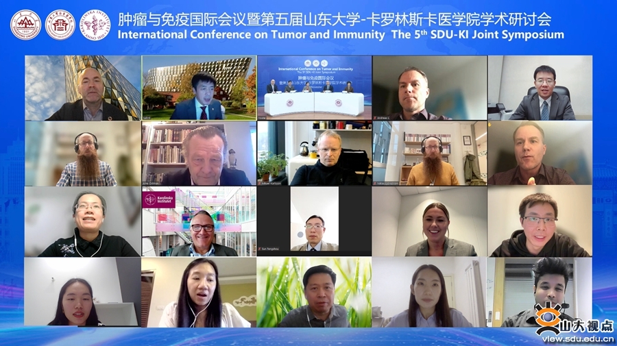 [本站讯]11月18日-19日,由山东大学齐鲁医学院主办的肿瘤与免疫国际会议暨第五届山东大学—卡罗林斯卡医学院学术研讨会在趵突泉校区举行。会议采用线上线下相结合形式,来自山东大学、瑞典卡罗林斯卡医学院、挪威卑尔根大学、日本熊本大学的8名专家学者和21名青年学者参加会议并作学术报告。卡罗林斯卡医学院副校长Robert Harris,山东大学副校长、齐鲁医学院院长易凡参加会议并致辞。