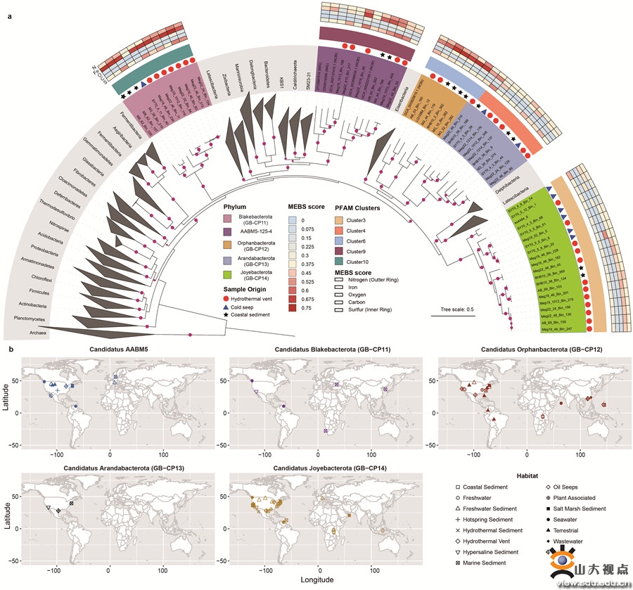 新发现的五个细菌门类进化关系及其在全球不同环境中的分布