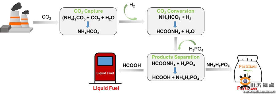 图1 CO2捕获并转化为甲酸和肥料技术路线示意图