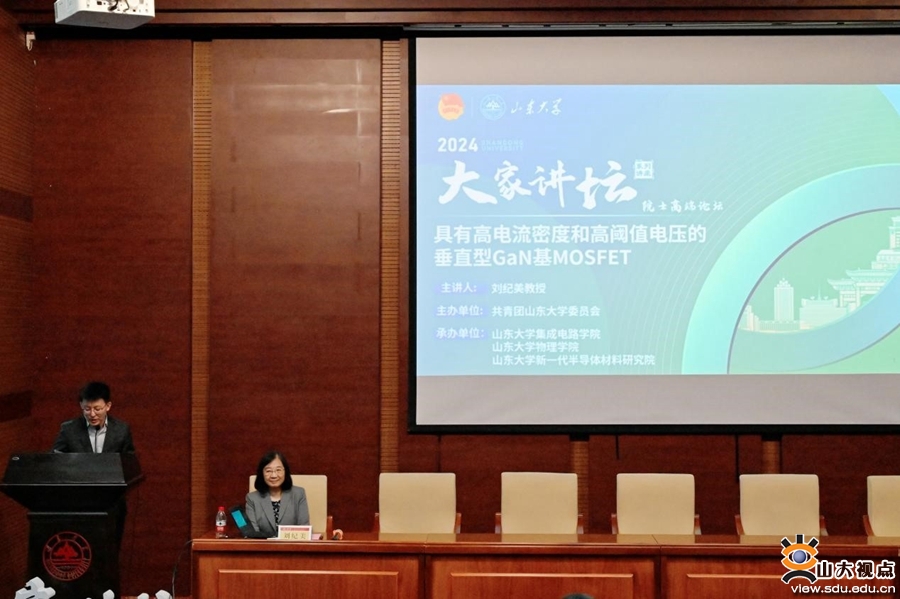 [本站讯]4月16日,美国国家工程院院士、香港工程科学院院士、香港科技大学教授刘纪美做客山东大学“大家讲坛”,作题为“具有高电流密度和高阈值电压的垂直型 GaN 基 MOSFET”的学术报告,畅谈氮化镓功率器件的发展历程以及新一代垂直型氮化镓功率器件研究进展。山东大学集成电路学院党委书记吴天柱出席活动。