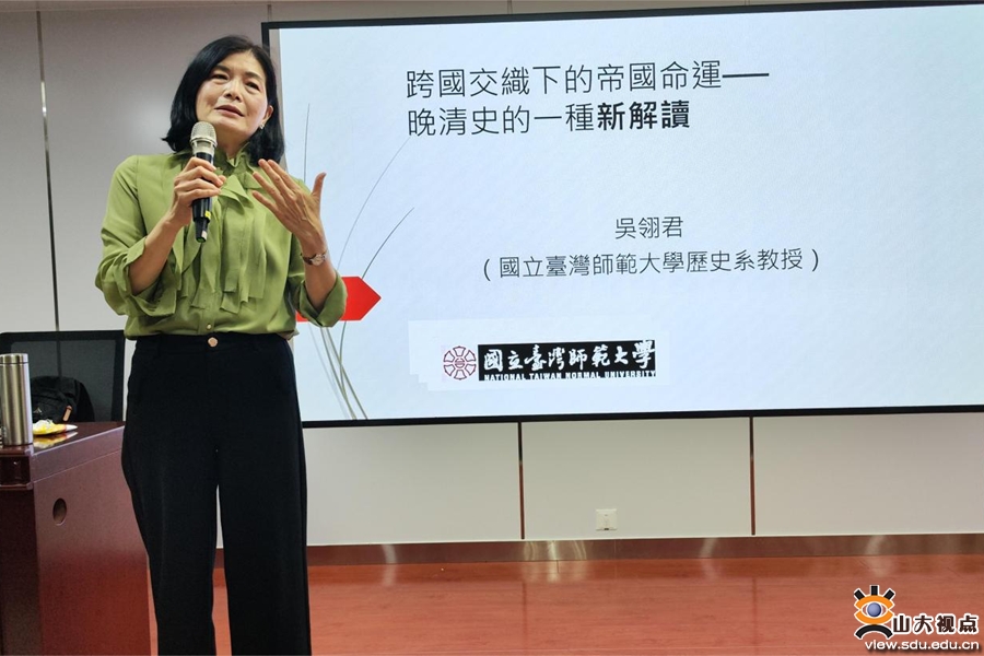 [本站讯]4月23日晚,台湾师范大学历史系教授吴翎君作题为“跨国交织下的帝国命运——晚清史的一种新解读”的讲座。讲座由山东大学历史学院教授刘家峰主持。