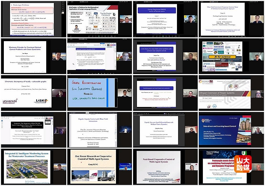 [本站讯]近日,由山东省教育厅主办、山东大学承办的“2025国际产学研用合作会议——前沿数学与复杂系统分析、控制及应用分会场”举行。会议由山东大学数学学院与控制学院联合承办,以线上线下相结合的方式进行。