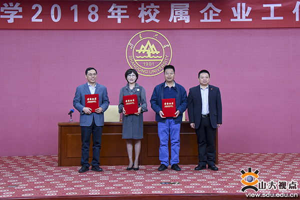 会议对2017年度在企业经营管理、科技创新方面作出突出贡献的优秀管理团队和研发团队进行了表彰和奖励,授予产业集团等5个企业管理团队经营管理效益奖,授予山大地纬等企业的 5个研发团队科技创新奖,并予以相应奖励。会上,山大华特、山大地纬、山大鸥玛、山大电力四家企业作了工作交流,产业集团、产业党委与部分企业签订了2018年经营目标及党风廉政建设责任书。