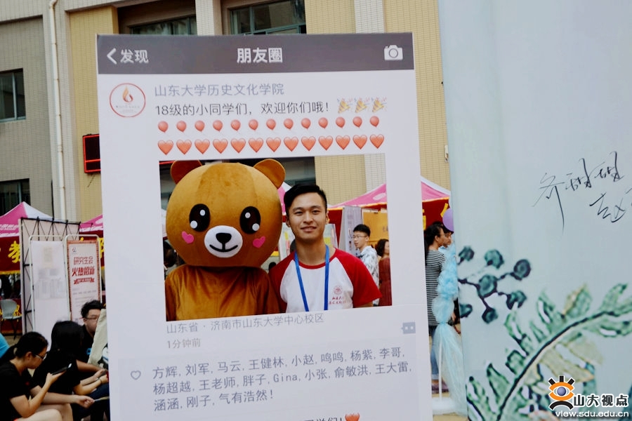 不错,刚到中心校区迎新现场就有回家的感觉。扫一下二维码就可关注山东大学学生会,了解学校的各项学生活动信息。报到新生还可以现场拍照,留下一次成像的影像。初见山大,在开启大学生活的新篇章前,用“开学纪念照”记录下如此有意义的一刻,真的很棒。青春为伴,振翅高飞,让我们记录美好时刻,共赴未来。