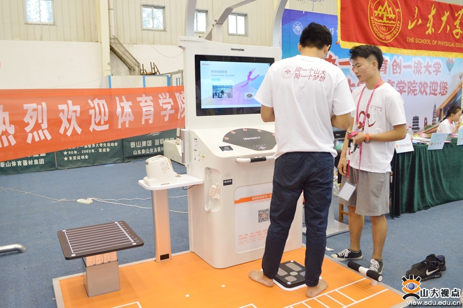 体育学院将学院智慧体育实验室的几项新型体质测试设备拿到迎新现场,对新生进行体质成分分析、身高、体重、肺活量、握力等身体素质测试,并为新生制定身体素质档案。