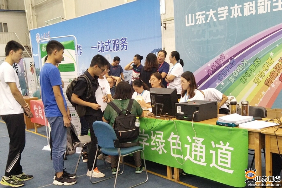 [本站讯]9月8日、9日,山东大学学生资助中心在各校区设立“绿色通道”,确保家庭经济困难学生顺利入学。