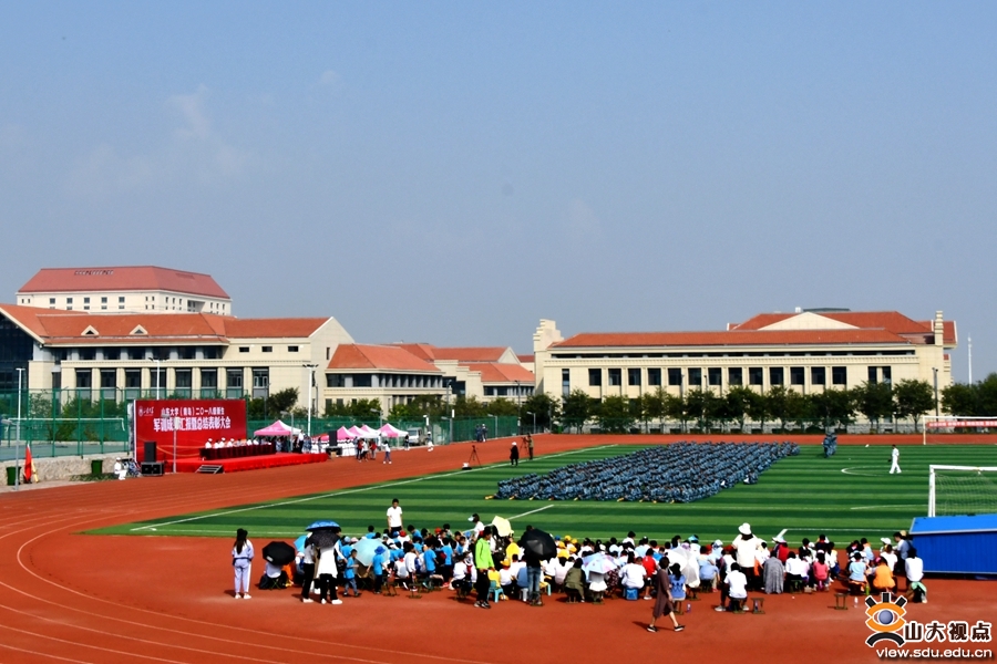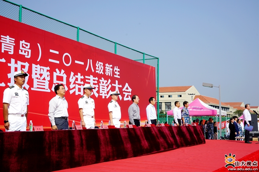 大会由青岛校区党工委副书记郭邦礼主持。青岛校区党工委办公室、校长办公室,本科生教育办公室,学生工作部相关负责人;承训教官、政工干部、全体参训学生以及山东大学实验小学师生代表参加大会。