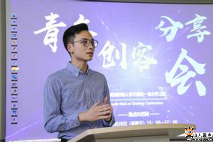 分享会上,李天驰以近期社会上的创新创业热点事件为导入,结合自己的创业经验和理解,进行了详细而深刻的分析。他谈到了大学生创业现状,提出创业前大学生应先思考创新创业的原因,他认为创新是对市场上所有的经济价值的一种提升。他以“拼多多”、“VIP陪练”等企业为例对创新创业应当深入蓝海、直击痛点这一观点进行了详细的阐述。提问环节中,山东大学的青年创客们踊跃提问,李天驰一一作出了详细解答。关于大学生在教育领域的创业项目发展问题,李天驰以机构对学员的获取与转化为例深入阐发了见解和意见。分享会最后,他希望青年创客以年轻为资本,敢想、敢做。