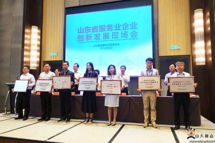 [本站讯]近日,山东省发展和改革委员会在青岛举办全省服务业企业创新发展现场会,会上对山大产业集团所属企业——山大地纬软件股份有限公司等十八家首次认定的省级服务业创新中心进行了表彰授牌。国家发改委产业协调司副巡视员李忠娟、山东省发改委副主任潘好亮等领导及各地市发改委领导、重点服务业企业代表等100余人出席了会议。