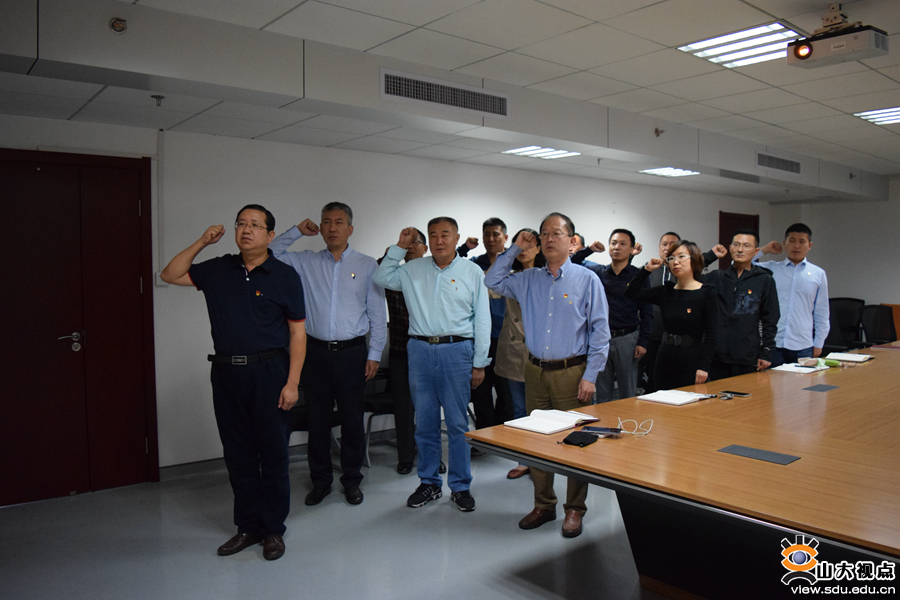 课前,于振国带领全体党员面对党旗举行了重温入党誓词和佩戴党徽仪式,集体学习了《论激励干部新时代新担当新作为》系列文章。基建部部长张敬明及部门非党员干部也参加了集中学习和党课活动。