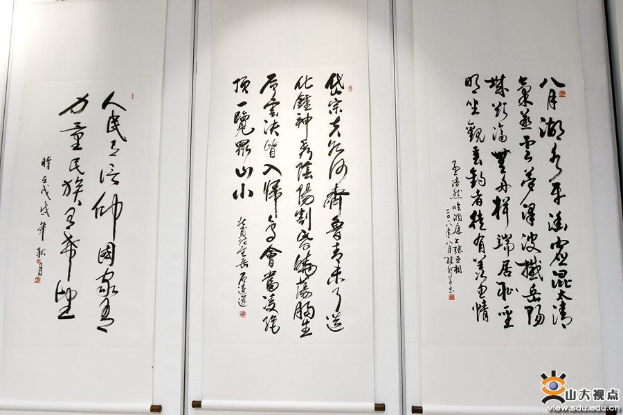 书画展由山东大学党委宣传部主办,山东大学书画研究院、山东大学老教授协会承办,青岛校区政工处、图书馆相关人员参加相关活动。书画展展出将持续至本学期末。