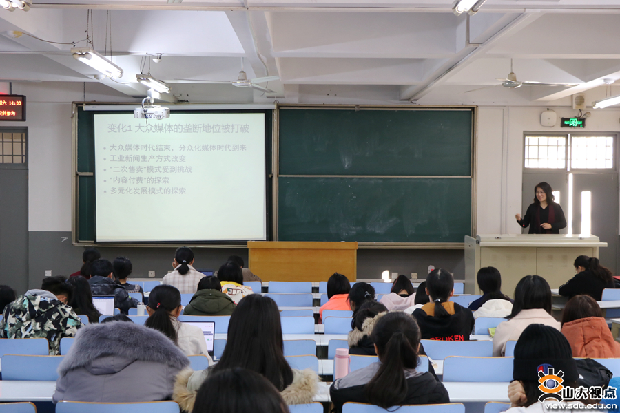 在讲座环节,徐玉芹结合其从业经历,首先解读了媒体转型带来的若干变化。她说,随着移动网络和通讯技术的快速发展,媒介环境正在发生巨大变化,这个对高校新闻教育改革也有新的启发;同时,“变化”的是平台和形式,“不变”的是内容,在内容海量的今天,优质内容仍然属于稀缺品,自媒体更加需要提高专业性。随后,她从主题策划、服务信息、读者互动等方面详细讲解了自媒体的内容生产。她说,内容的生产要对各类的热点新闻保持关注,同时要通过提供服务来提高“粘性”,重视用户的需求和反馈。对于有志成为新闻媒体人的同学,她提出要注意培养“五个能力”,即采访中的沟通能力、布局中的逻辑能力、写作中的文字能力、数据挖掘能力和全媒体的呈现能力。她还结合丰富的职业经验和大量生动的案例,为同学们讲解了专业记者是怎样采写新闻的,从前期准备到后期撰稿、形成作品的全过程分享了新闻采写的21条建议。针对在本期活动报名阶段收集的80多条提问,徐玉芹在讲座的最后,分类作了生动解答。她建议同学们在自我认知和学业、职业探索的基础上合理规划未来发展,在变革的时代保持思维的开放性并培养良好的学习能力,在大学的学习实践中为未来发展打下良好基础。
