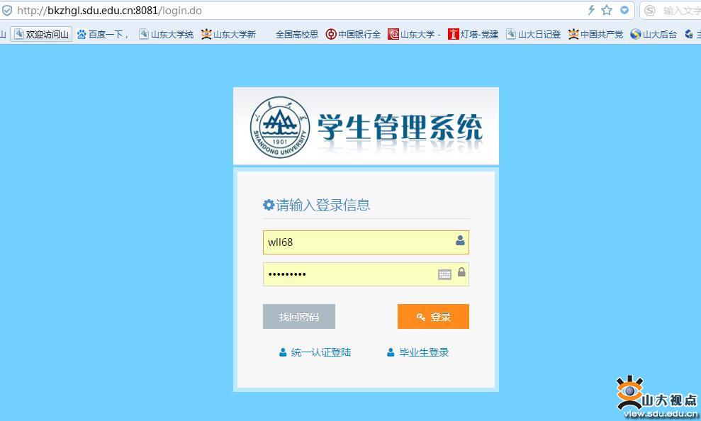 学生综合管理系统登录入口:http://bkzhgl.sdu.edu.cn:8081/login.do