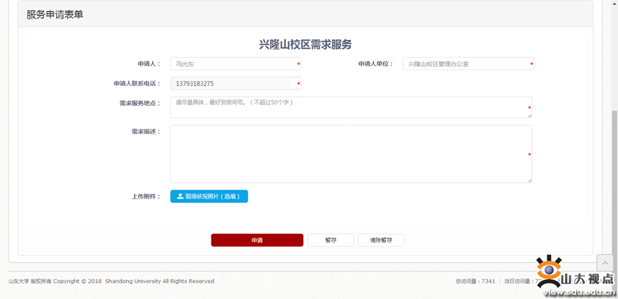2.进入“服务大厅”找到“兴隆山校区需求服务”