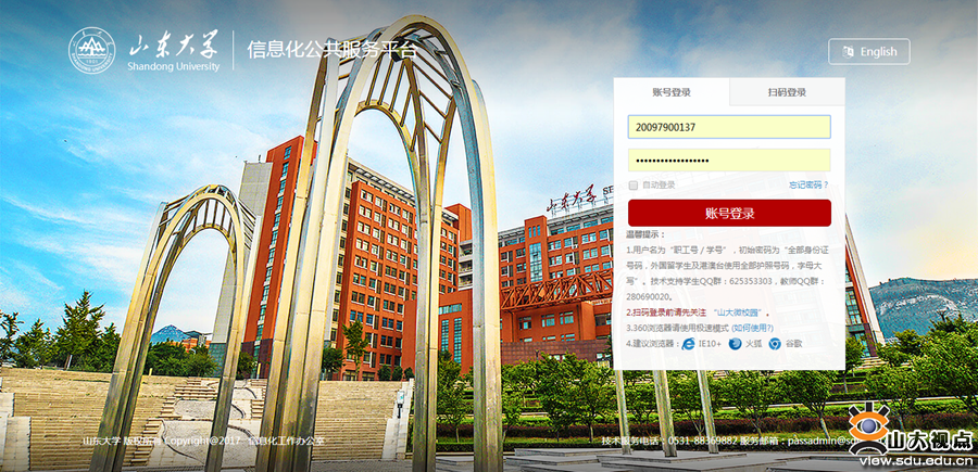 1.从山东大学信息化公共服务平台登录