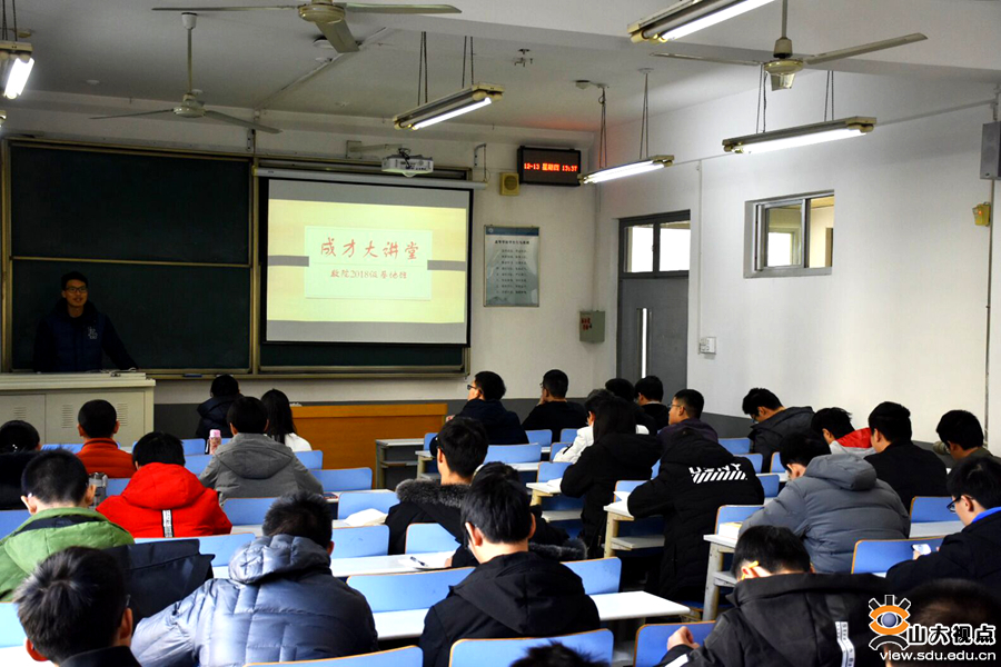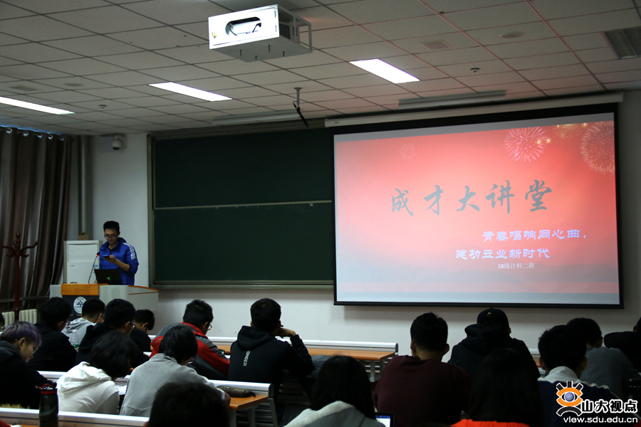 [本站讯]为深入学习宣传贯彻学校第十四次党代会精神,落实学校开展“弘扬爱国奋斗精神、建功立业新时代”活动的任务要求,引导广大学生树立“四个意识”,坚定“四个自信”,培养家国情怀,2018年10月以来,山东大学在本科生中组织开展了“青春唱响同心曲,建功立业新时代”成才大讲堂活动。自活动启动以来,共有550名学生走上讲台,召开班级层面活动309场、学院层面活动79场,覆盖374个班级、全部本科生年级,学生听众达12858人。