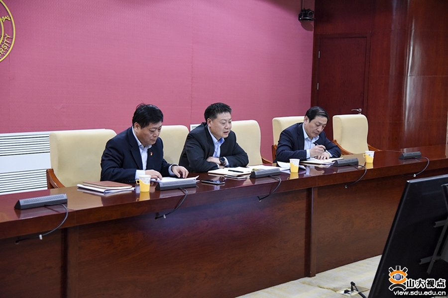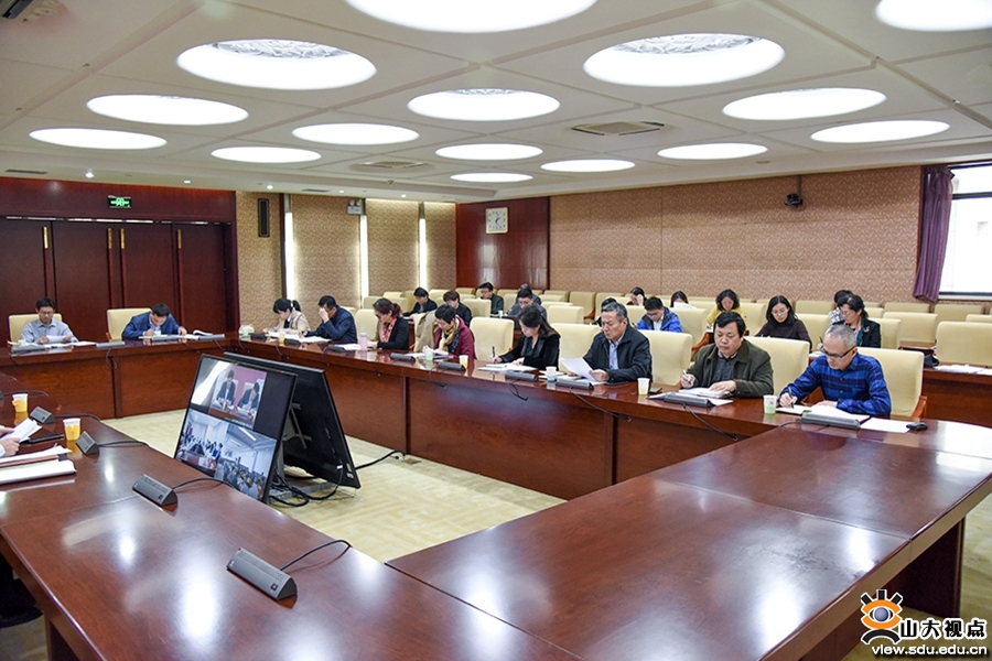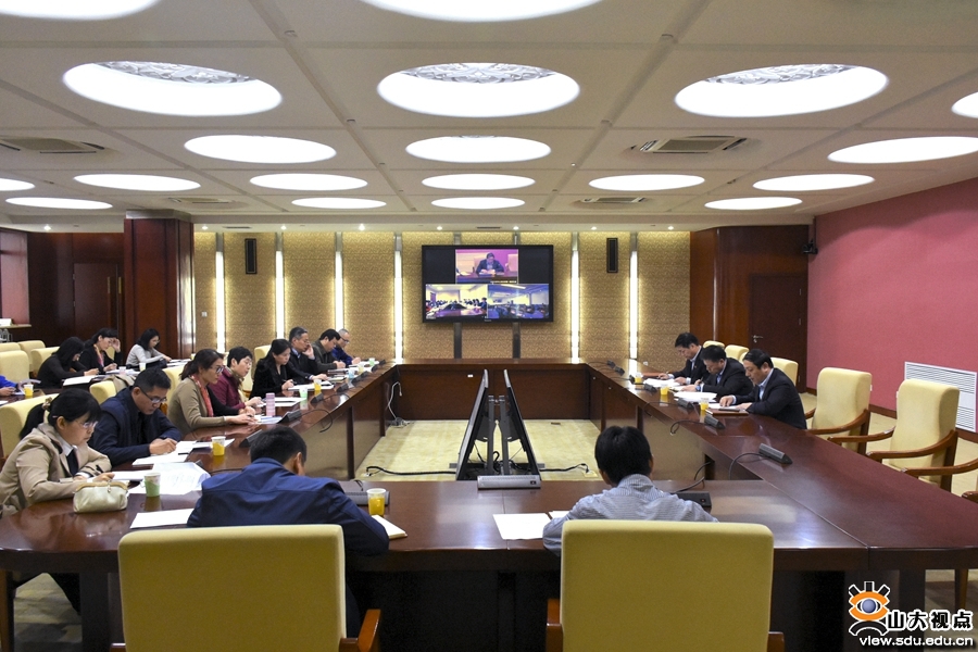 党办校办、人事部、科学技术研究院、科技创新军民融合研究院、人文社科研究院、国际事务部、财务部、审计处、资产与实验室管理部、齐鲁医学院财务与资产管理处相关负责人参加会议。威海校区、青岛校区设立视频分会场。