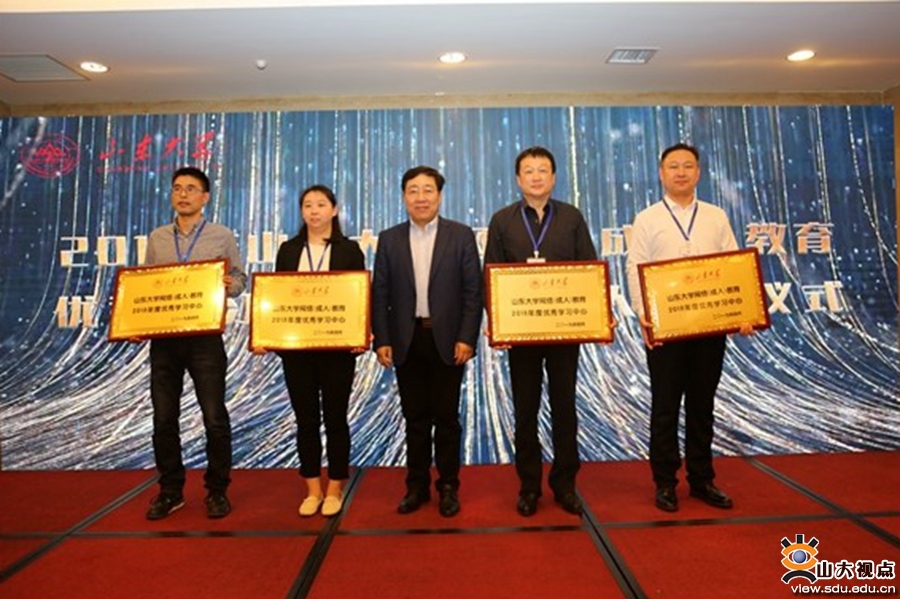 山东大学继续教育学院副院长刘灿伟宣读了《山东大学关于表彰2018年度网络(成人)教育优秀学习中心和先进个人的决定》,对2018年度网络(成人)教育优秀学习中心与先进个人进行表彰,授予安徽中华职业专修学院等8个学习中心“山东大学网络(成人)教育优秀学习中心”称号,授予青岛广播电视大学戴蕾等53人“山东大学网络(成人)教育先进个人”称号,靳光华分别为获奖集体与先进个人颁发奖牌和证书。德州市博文教育学校等6个优秀学习中心(函授站)代表及先进个人就网络(成人)教育的规范管理、教学与学生支持服务、学习心得体会等方面作了大会交流。博文教育学校校长崔付京作为学习中心(函授站)负责人代表宣读并签署《自律公约》。