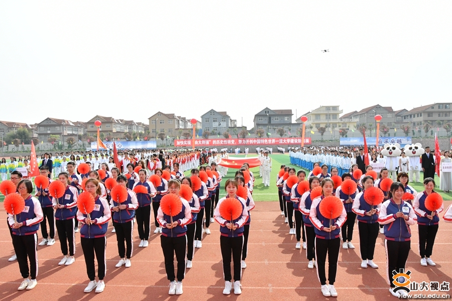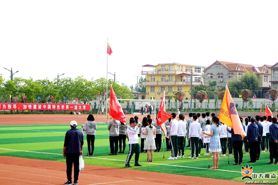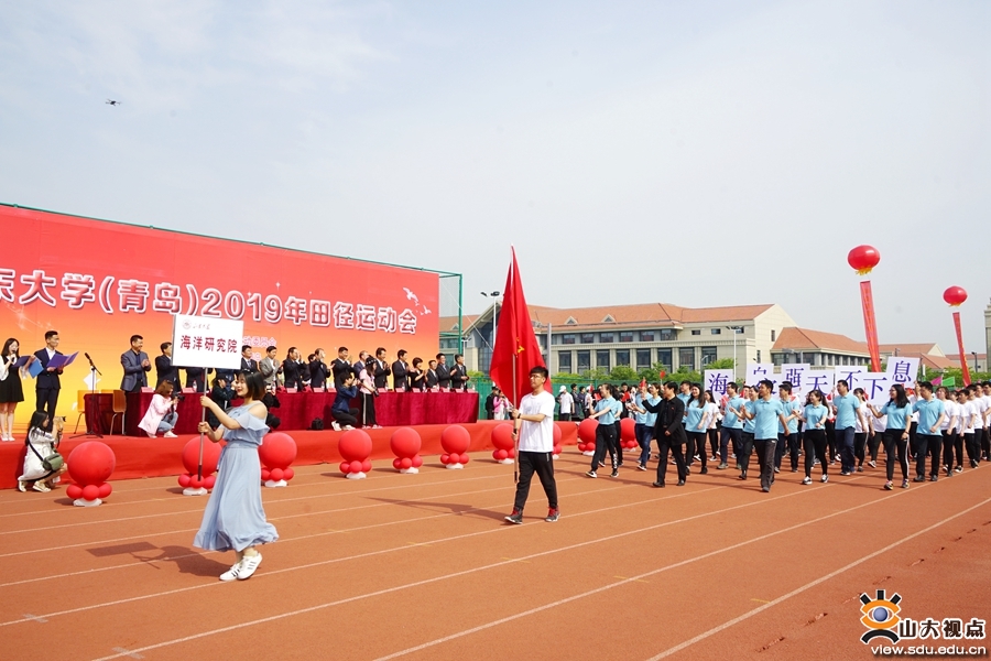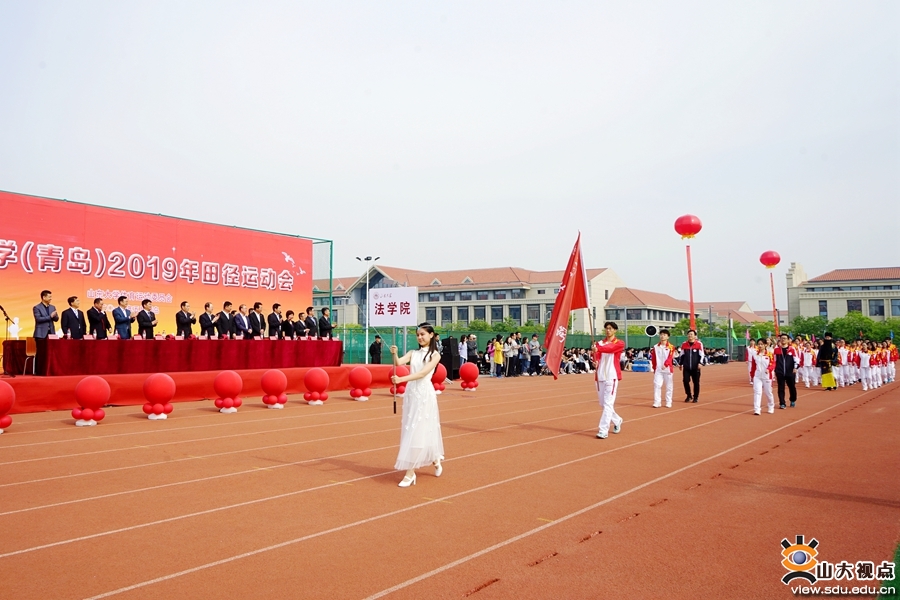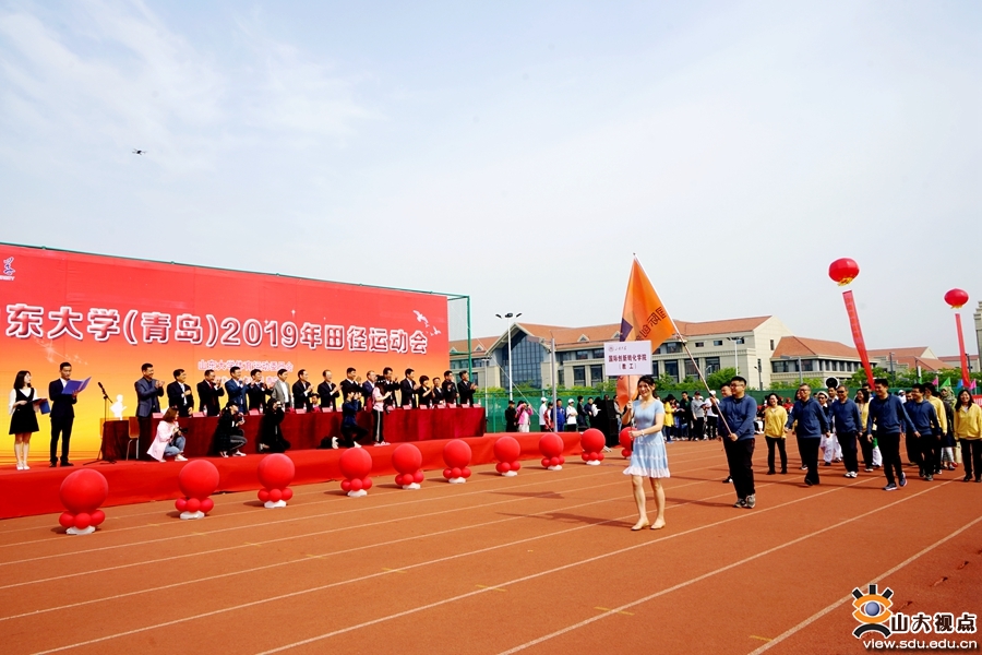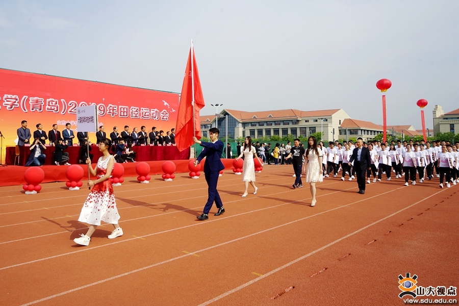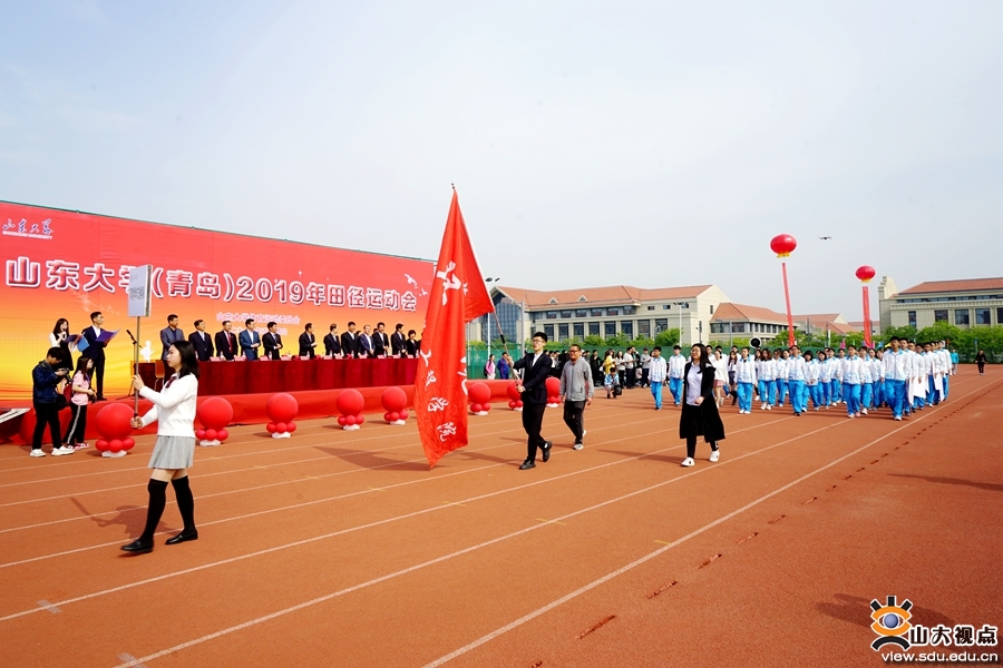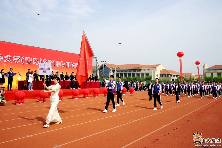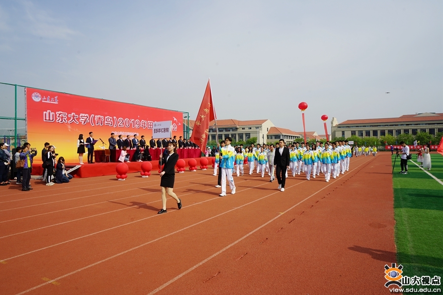 裁判员队伍和青岛校区学生田径队入场方队身姿挺拔,英姿飒爽;各学院入场方阵精彩纷呈,或身着各具特色的服装,或带来了别具风格的节目,展现着山大学子靓丽的青春活力和昂扬向上的体育精神。
