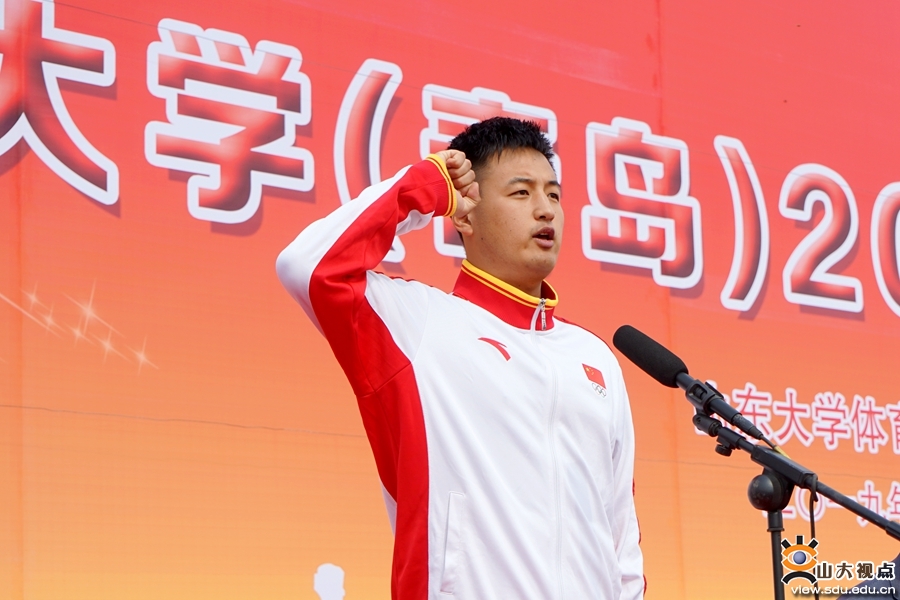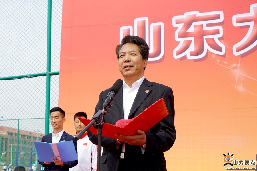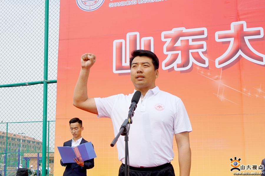 青岛校区副校长曹现强致开幕辞,他表示,山东大学一直高度重视学生的德智体美劳全面发展以及教师医务员工的体质健康,青岛校区自启用以来,全面贯彻党的教育方针,稳步推行课外体育锻炼与竞赛工作。今后,青岛校区将继续深入落实全国高校思想政治工作会议精神,牢牢把握学校高质量发展根本要求,紧紧围绕立德树人根本任务和“双一流”建设新引擎,始终聚焦学校第十四次党代会提出的“六大战略”和“十大任务”,全面加强校区群众体育工作,不断提高学生体质健康水平,实现校区群众体育的特色化、品牌化发展,推动群众体育工作再上新台阶、开创新局面。他号召青岛校区师生秉持“同一个山大、同一个梦想”的宗旨,办出高水平、高质量的运动会;希望通过比赛激发不惧风雨、迎难而上的奋斗激情、拼搏精神,并将其转化为加快推动山东大学实现“由大到强”历史性转变的磅礴力量,转化为奋力开创中国特色世界一流大学建设新局面的磅礴力量。