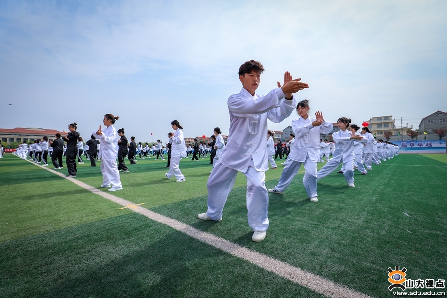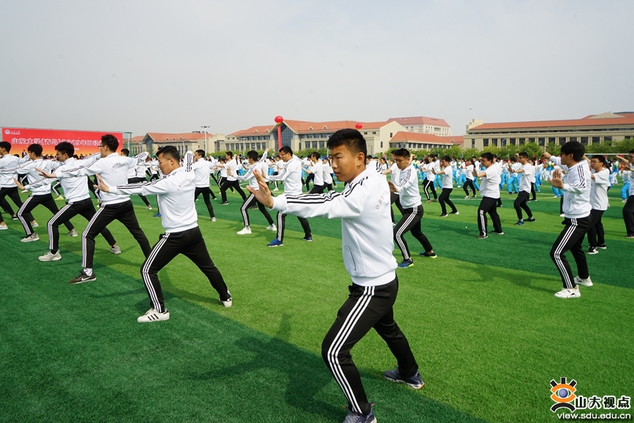 各学院本科生带来的太极拳集体表演将开幕式的热烈气氛推向高潮。同学们身穿各自的队服,伴随太极拳悠扬的旋律,中正安舒地蹲身起势,开合有序、轻灵圆活地提身出拳,在尽显太极武术的刚柔并济特点的同时,融入了浓郁的现代生活之美。