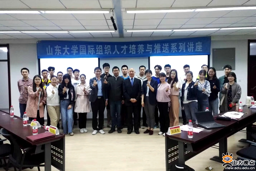 [本站讯]5月10日,山东大学“国际组织人才培养与推送”系列讲座之《走进联合国》在山东大学中心校区信息楼举行。国家环保总局国际司原司长、联合国环境规划署原特别协调员王之佳担任主讲嘉宾,学生就业创业指导中心主任肖祥、国际事务部部长孙凤收为王之佳颁发“山东大学学生职业发展导师”“山东大学国际组织人才培养推送工作顾问专家”聘书。