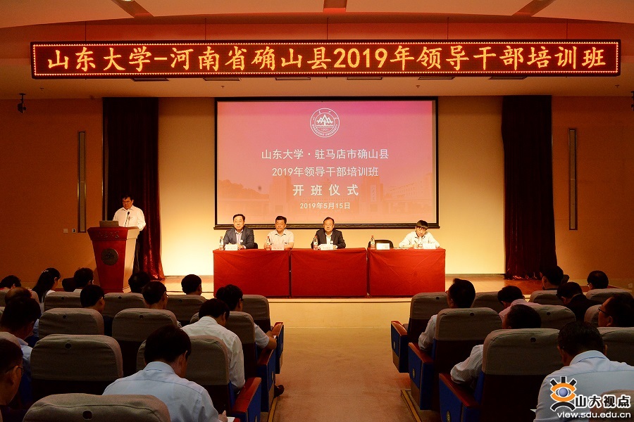 开班仪式上,尹作升介绍了近年来山东大学事业发展情况以及威海校区的基本情况,回顾了山东大学在确山县脱贫攻坚方面做出的积极努力。他表示,此次培训班是一项重要政治任务,学校对此给予高度重视,积极调动各类优质资源,为学员创设良好的学习环境,全力做好各项保障工作,确保完成好培训任务。他希望各位学员能够珍惜此次学习机会,做到学有所思、学有所研、学有所悟、学有所得,真正实现教学相长、共同提高。
