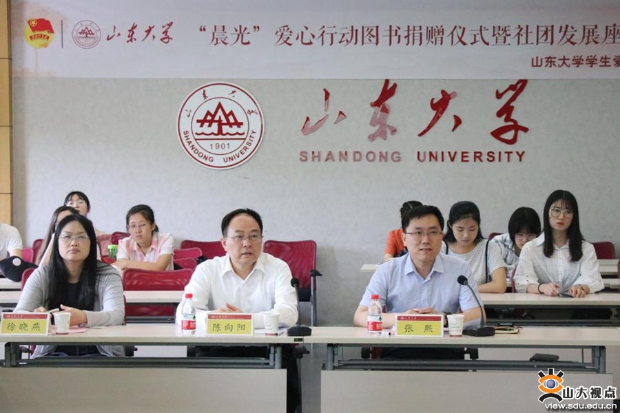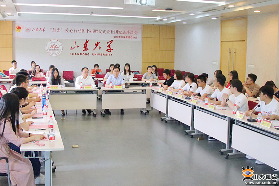 [本站讯]5月16日,山东大学学生爱心协会“晨光”爱心行动图书捐赠仪式及社团发展座谈会在中心校区举行。爱心协会联系校领导、校党委副书记、纪委书记陈向阳出席活动。