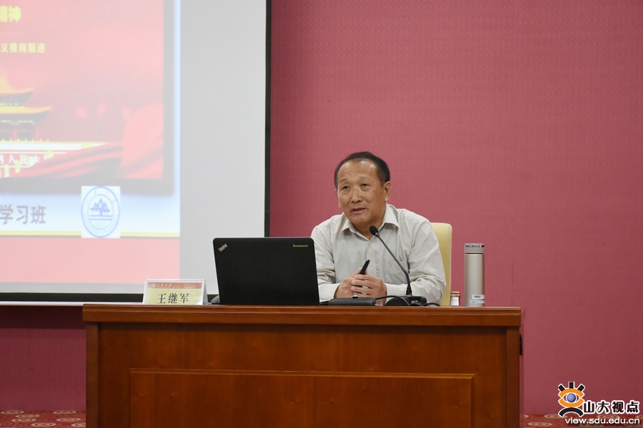 王继军教授的报告以《学习习近平新时代中国特色社会主义思想夯实机关干部基本功》为题,并针对现实问题,运用大量的文献、史料,重点谈了三个方面重要内容:一是坚持有效的学习。善于学习就是善于进步,要加强理论修养,真正掌握马克思主义立场观点方法,坚持以与时俱进的态度学习运用马克思主义理论观点方法。二是坚持正确的工作方法。工作方法是做好工作的基本路径,要把提高工作能力当成一项根本任务。三是坚持党性和道德修养。从文化自信角度出发,把孔子“恭”“宽”“信”“敏”“惠”的标准与党性和道德修养结合起来,强化道德锻炼。