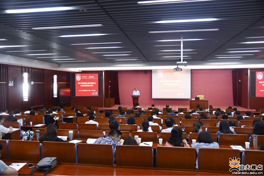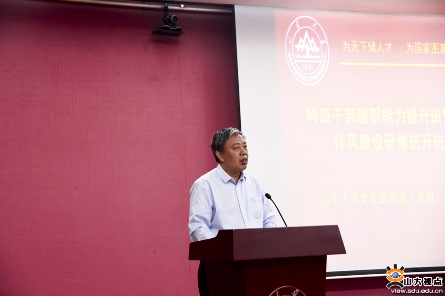 [本站讯]5月21日,山东大学2019年度科级干部履职能力培训班及机关作风建设研修班举行开班式。校党委副书记仝兴华出席会议并讲话。青岛市“两学一做”学习教育宣讲团成员、山东大学兼职教授王继军作开班报告。